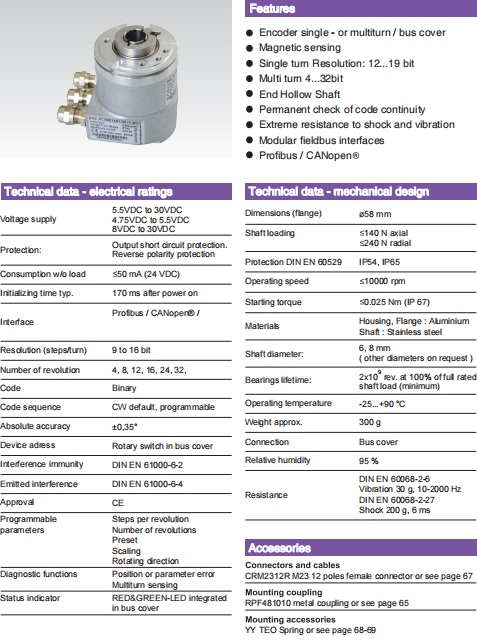 接口:現場總線 / CANopen®/   分辨率(脈沖數/圈):9 至 16 位