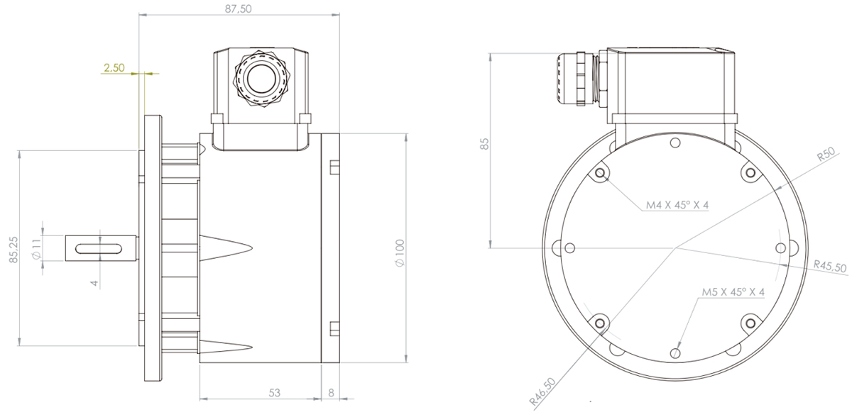 尺寸(法蘭):B10法蘭/115mm   軸類型:φ11mm(實心軸)